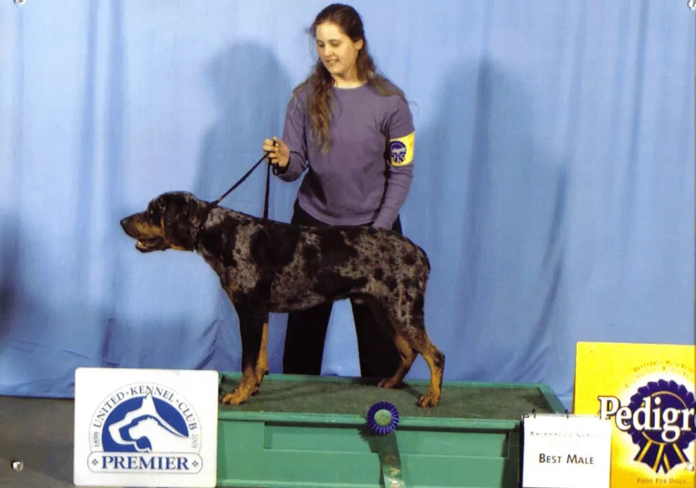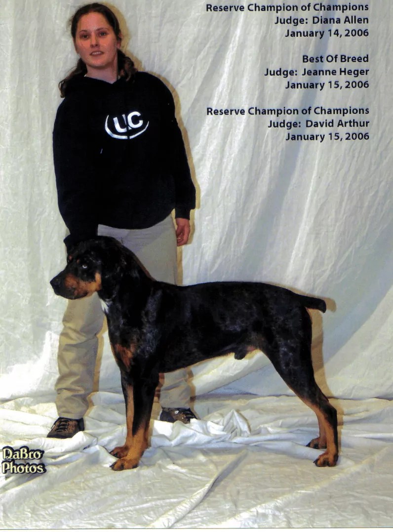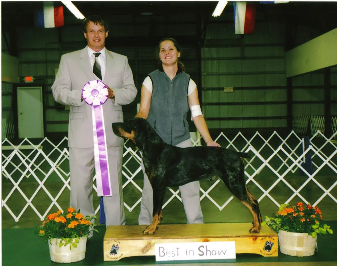 Beau earned his first leg towards his Grand Champion title by winning the Champion of Champions class over three dogs (only two are required for this leg). He also won Best of Breed picking up another 4 Top Ten points. This gives him a total of 7 Top Ten points and finishes this weekend as the #1 UKC Catahoula. This judge also awarded Beau’s half brother King’s Ridge’s Jagger Best in Show at a Rarities show in Canada several years ago. Judge: Jeanne Heger.