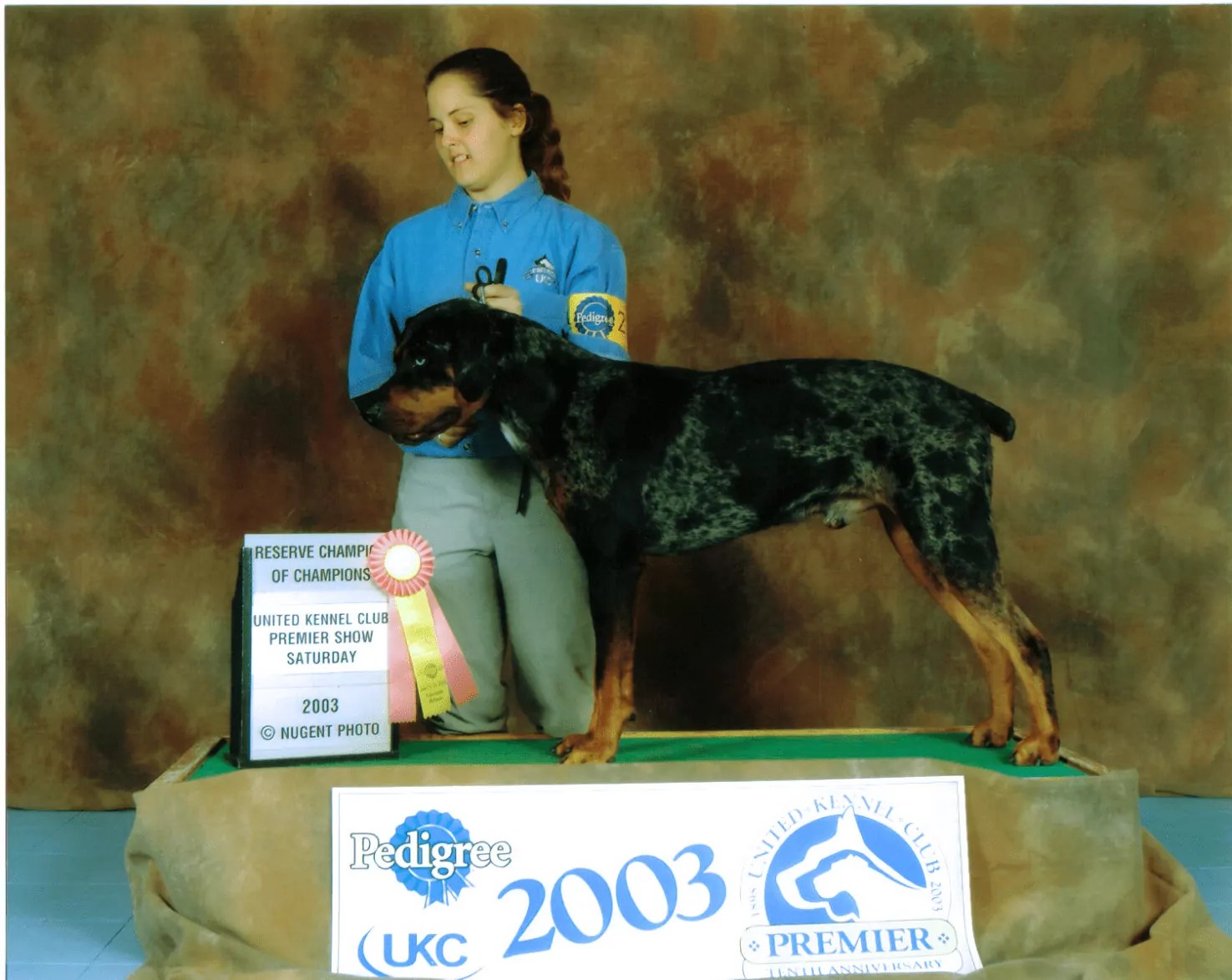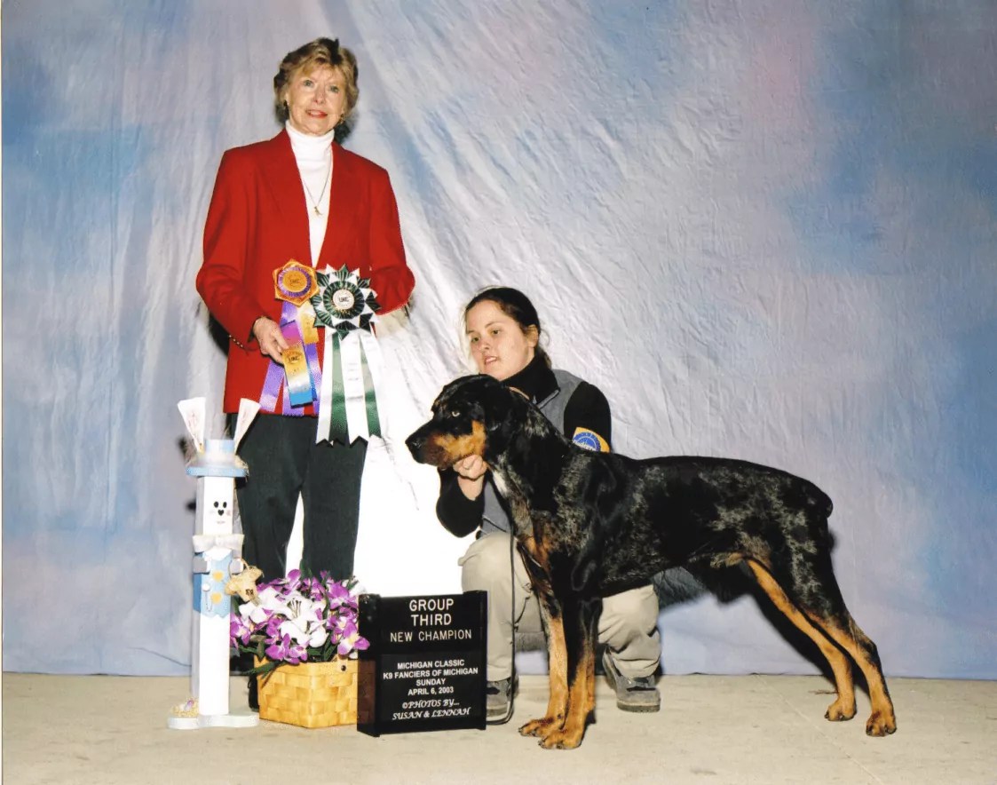 The date in the photo is wrong (listed as june 15, 2001). Beau beat a longtailed dog to win Best Male. This is his first Major (Competition Win). It is his second time in the ring and his first weekend out. Judge: Geoff Browne.