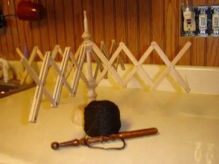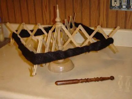 Small tabletop Italian Yarnswift I found at Goodwill for $.99 (US). It was in with the towel racks, so I was surprised to find it at all.