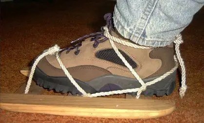 Not the lightest things in the world, but they are small, compact, cheap to make and- most importantly- useful. My Dad and I built these in an afternoon. Very easy, especially with Power Tools. These were my first snowshoes, so I was totally new to the experience- never even been on a pair before. It took about five minutes to figure out what I was doing on them. They don’t sink into the snow very far, only about two inches. In comparison, I stepped off the snow shoes and sunk up to my waist. Using poles of some sort would be useful.