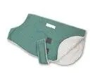 Nylon exterior with fleece interior. Comes with many options of color (shell and liner) shell (standard nylon or Taffeta nylon) and reflective tape on the sides for visibility. Keeps my short-haired dog warm at night just fine. Packs down small and isn’t too heavy. Best for a day hike in cool and/or damp temperatures. $20 at dogbooties.com