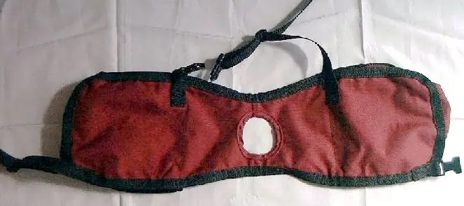 This is what the bottom of the pack should look like, just so you get an idea of where everything is, in relation to each other. You can pad the buckles with polar fleece. I didn’t want to as the pack shouldn’t be holding so much as to make it necessary. I also didn’t want to put the time into it. It would be good for short-haired dogs or those who chafe easily. It’s your pack, do what you want with yours.