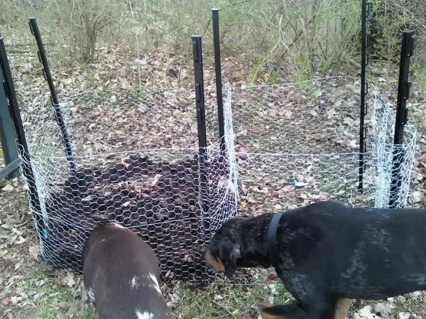 So I used a coupon I had for TSC (Tractor Supply Company) and put it to use buying materials for the bin. I purchased 6 step-in posts for electric fencing ($2.50 each, plus tax). I didn’t use metal posts because they’re more expensive, harder to put in, need additional fence clips to install, and are a bit overkill for this project. If you have a TON of compost to make, they’d probably be better. I also used 2-foot chicken wire (1″ grid). 4-foot would be better, but again, I have a small operation going on here, so it’s unnecessary at this time. 2′ chicken wire is about $10 for a 25-foot roll, and 4-foot was around $15 for 25′.