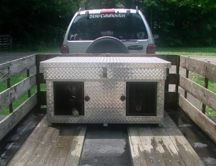 I’d originally planned to get a smooth-skinned aluminum dog box without top storage, but was concerned about it being large enough for my dogs as it was designed for bird dogs.