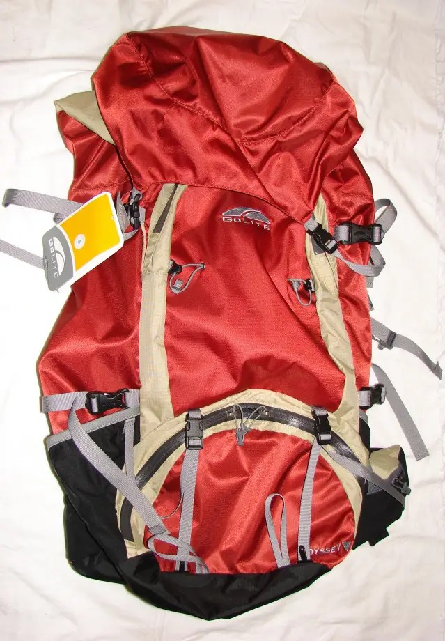 GoLite Women’s Odyssey pack (2008 version). New with tags. Size: Medium. Color: Lip (brick red). $100 US.