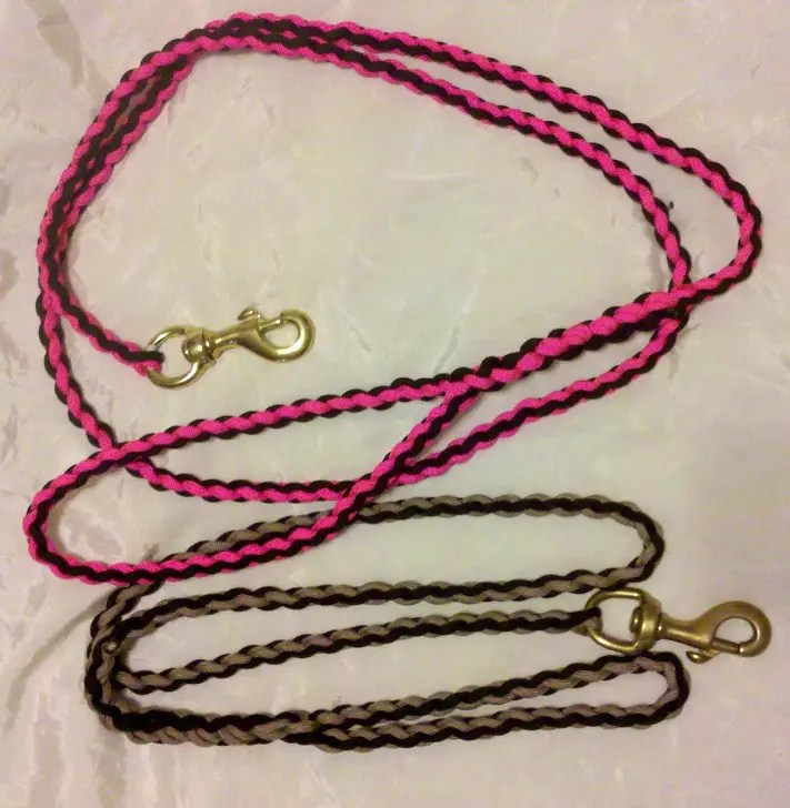 I used a brass snap on the tan/black leash and bronze on the pink/black. The nice thing with paracord is that it’s strong, light weight, and resistant to mildew. This is a great choice for leashes for your traildog.